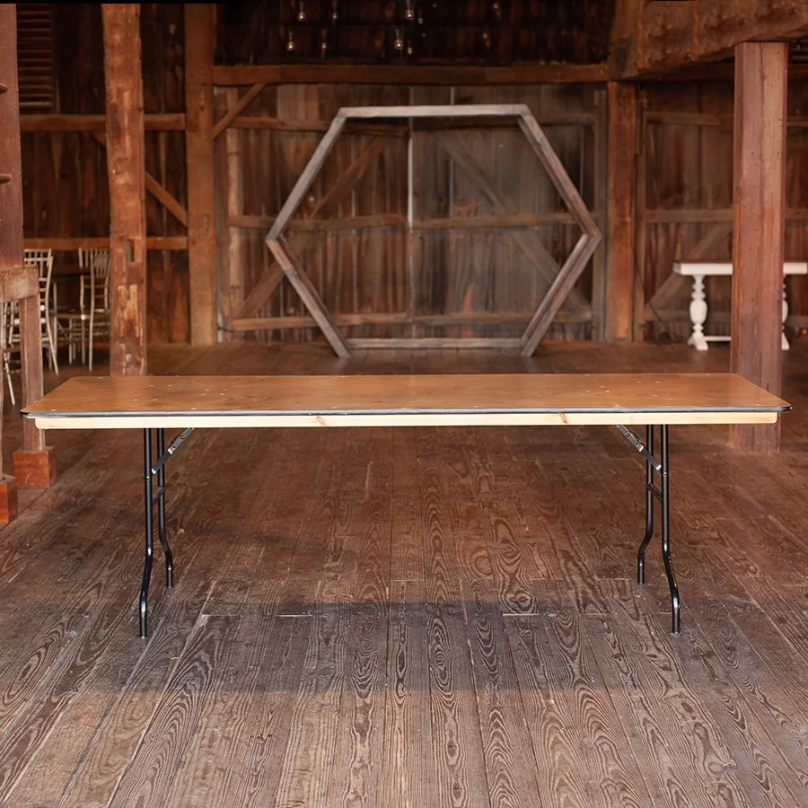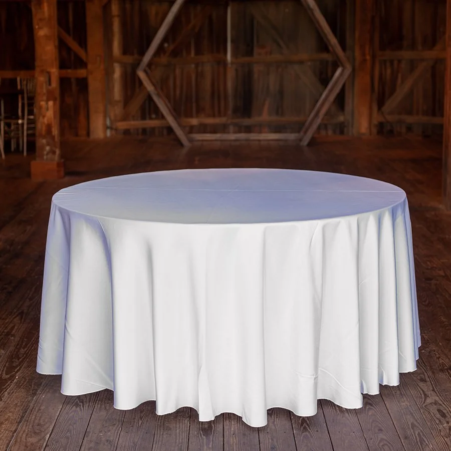 Comfortable seats up to 8 guests, and includes your choice of a poly white or poly black linen. If you rent different color linens, a 120” round will go to the floor.